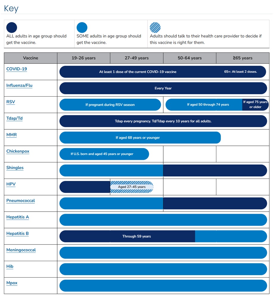 Recommended Immunizations for Adults Aged 19 Years and Older, United States, 2025